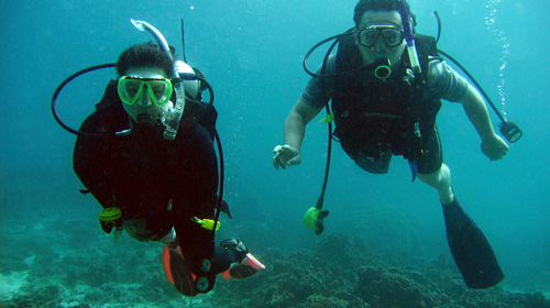 落单时的应对:保持镇静,浮上几米,寻找同伴找不到时就浮出水面,注意观察气泡。超过10分钟,仍无同伴的踪迹,应回到入水地点。若无必要,请不要猎杀水中动物。每10米检查残压计余量。