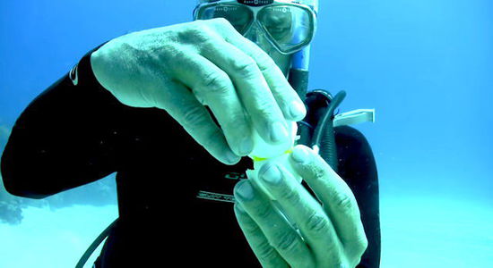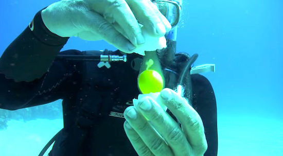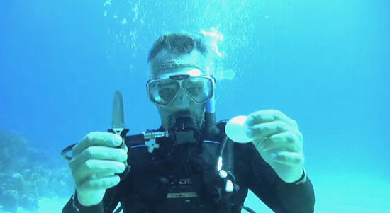 潜水员用一把小刀打开鸡蛋