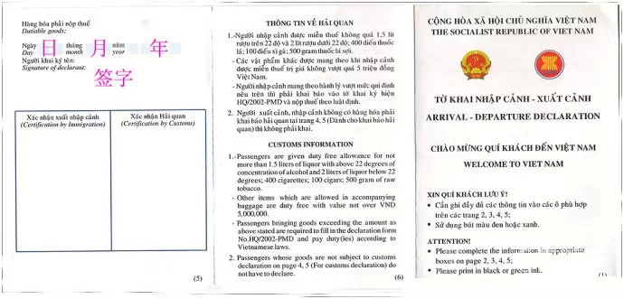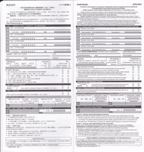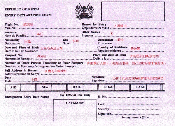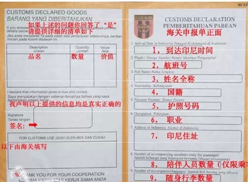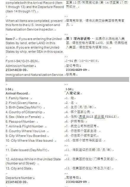 入境卡背面:
